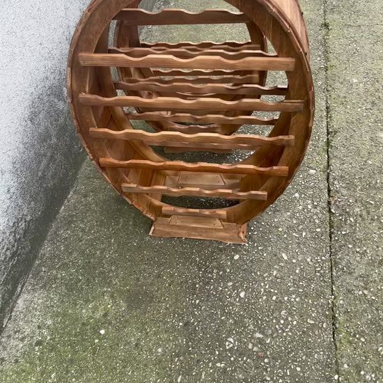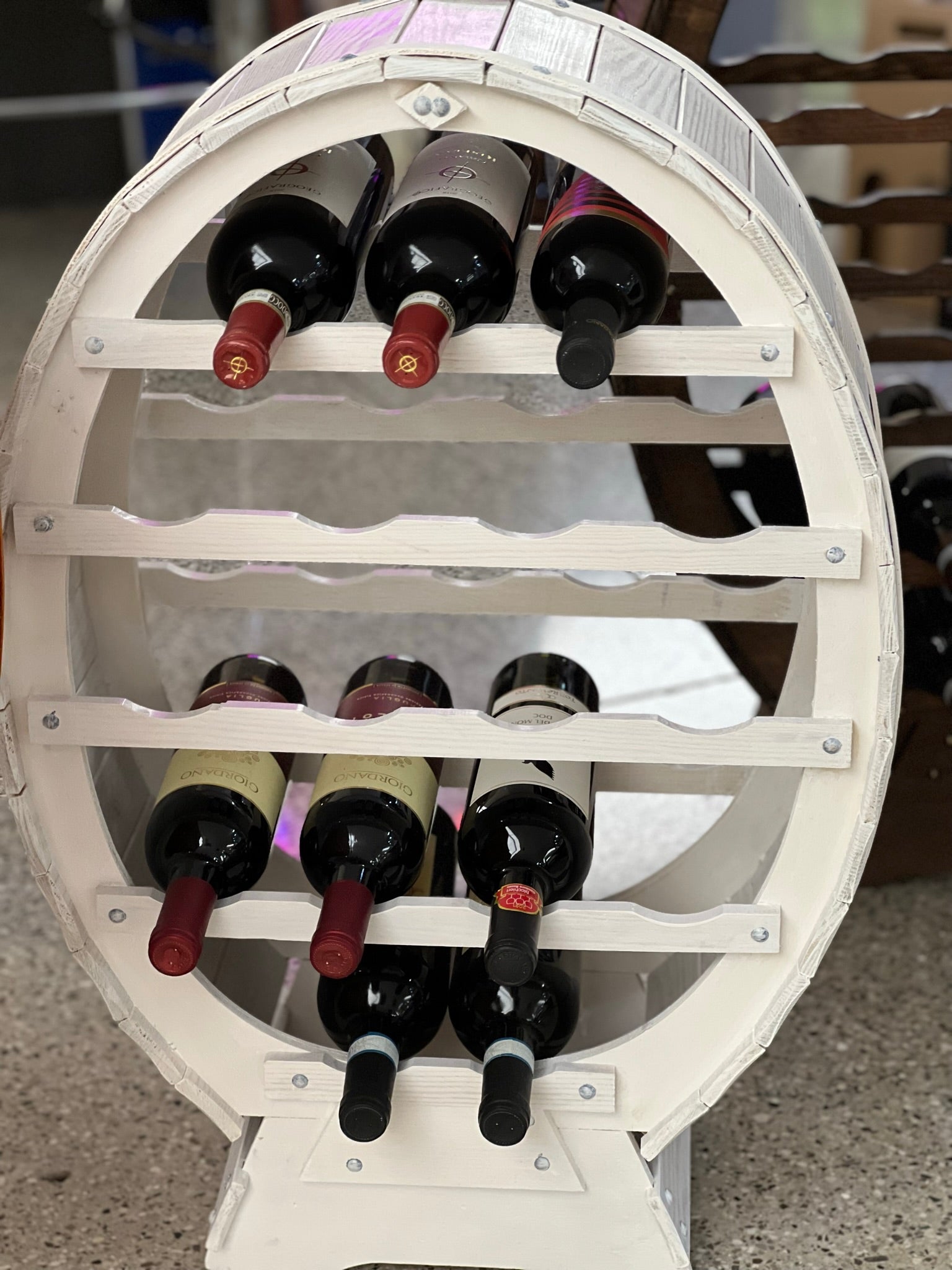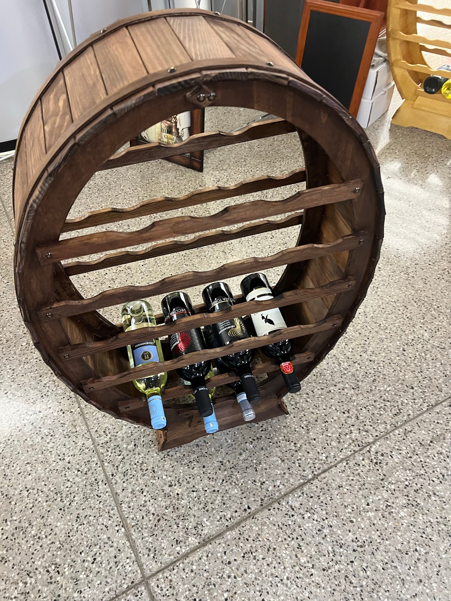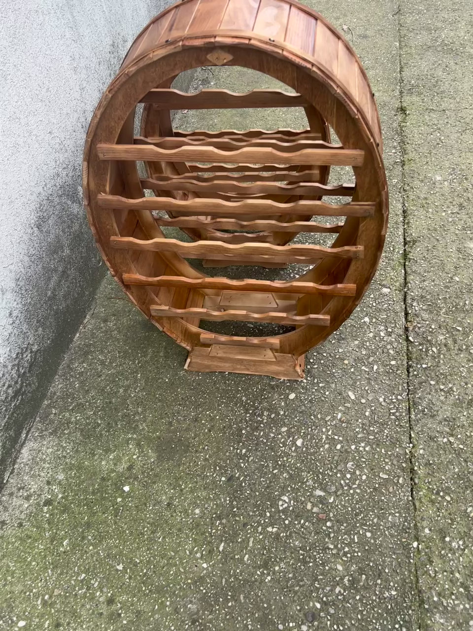 Fantastic wine rack in firwood handmade from local italian carpenters. Available in dark oak, pine, white or cherry. Wine rack in barrell shape.