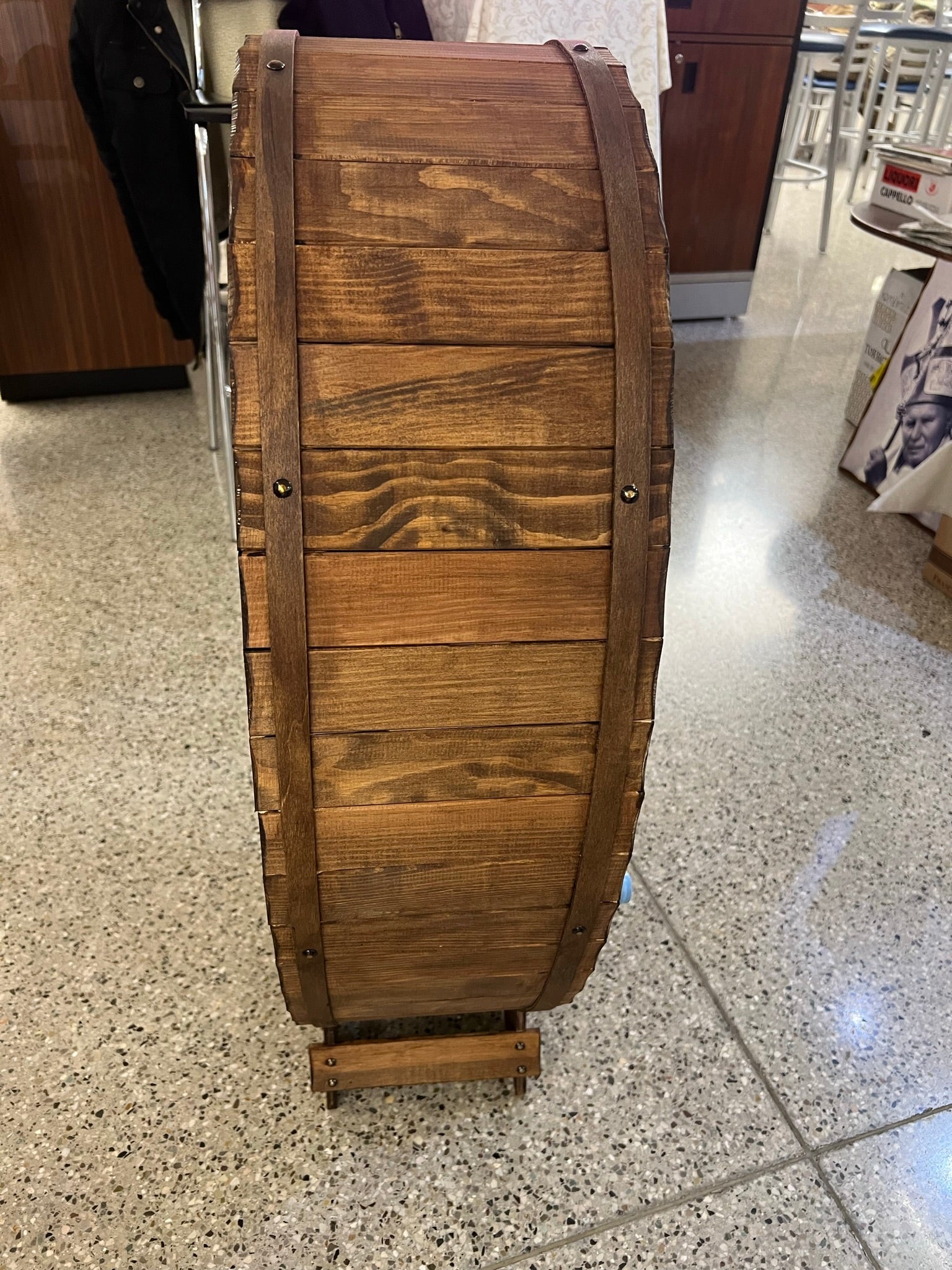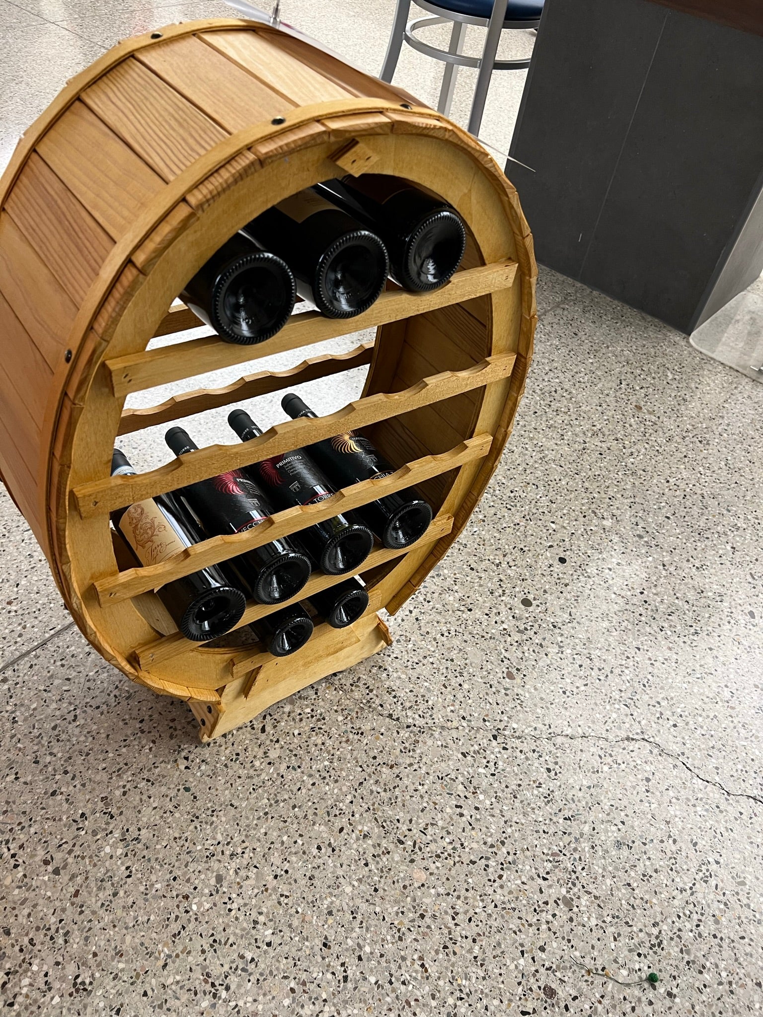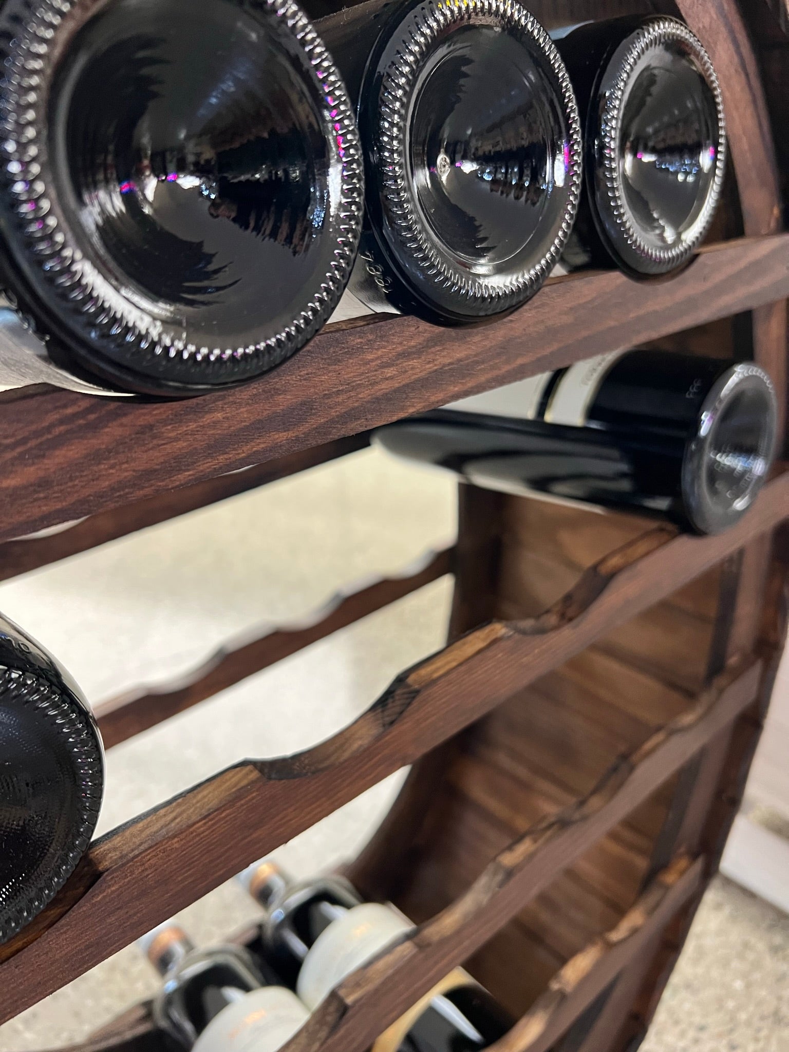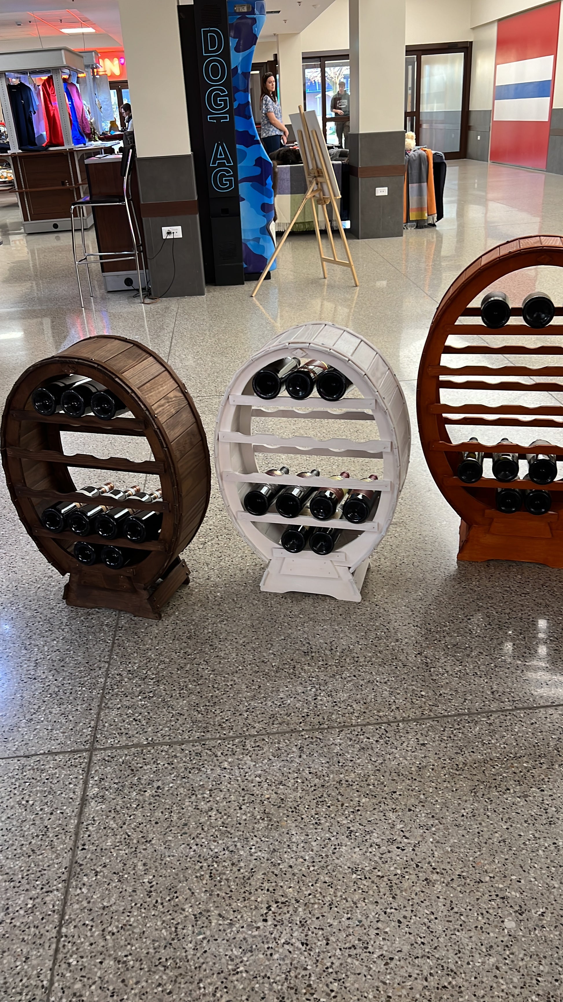 Fantastic wine rack in firwood handmade from local italian carpenters. Available in dark oak, pine, white or cherry. Wine rack in barrell shape.
